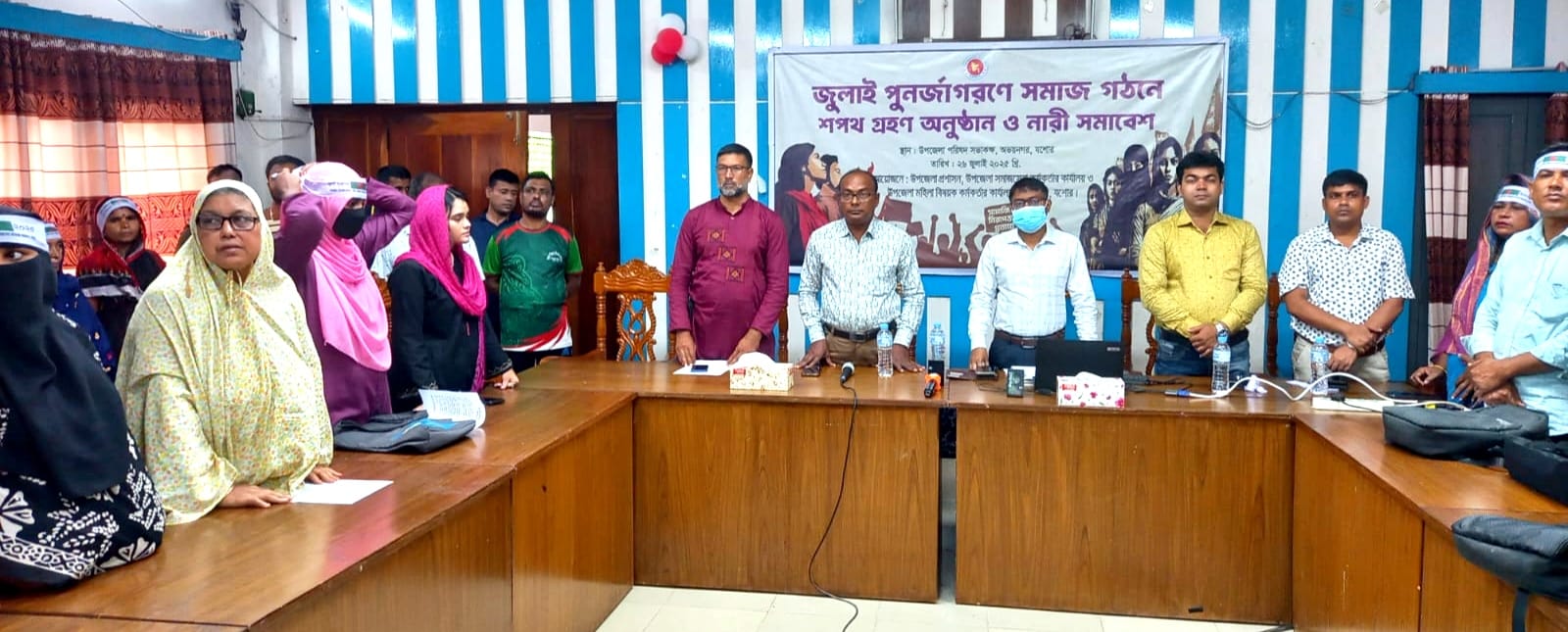 ‘জুলাই পুনর্জাগরণে সমাজ গঠনে লাখো কন্ঠে শপথ’—এই স্লোগানকে সামনে রেখে অভয়নগরে অনুষ্ঠিত হয়েছে শপথ গ্রহণ অনুষ্ঠান ও নারী সমাবেশ। শনিবার (২৬ জুলাই) সকাল ৯টায় অভয়নগর উপজেলা পরিষদের সভাকক্ষে এ অনুষ্ঠানের আয়োজন করা হয়। উপজেলা প্রশাসন, সমাজসেবা অধিদপ্তর ও মহিলা বিষয়ক কর্মকর্তার কার্যালয়ের যৌথ উদ্যোগে এ আয়োজন করা হয়।
