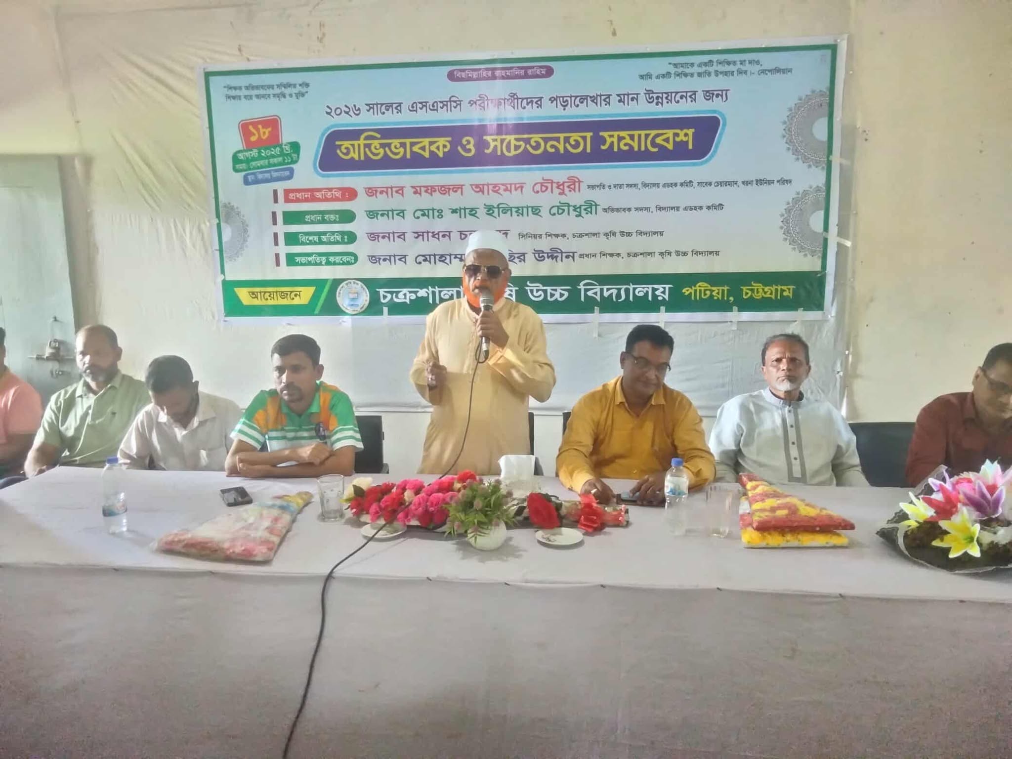 চট্টগ্রামের ঐতিহ্যবাহী শিক্ষা প্রতিষ্টান চক্রশালা কৃষি উচ্চ বিদ্যালয়ের ১০ম শ্রেণির শিক্ষার্থীদের সচেতনতার লক্ষে এক অভিভাবক সমাবেশ (১৮ আগষ্ট সোমবার) সকালে বিদ্যালয়ের হল রুমে