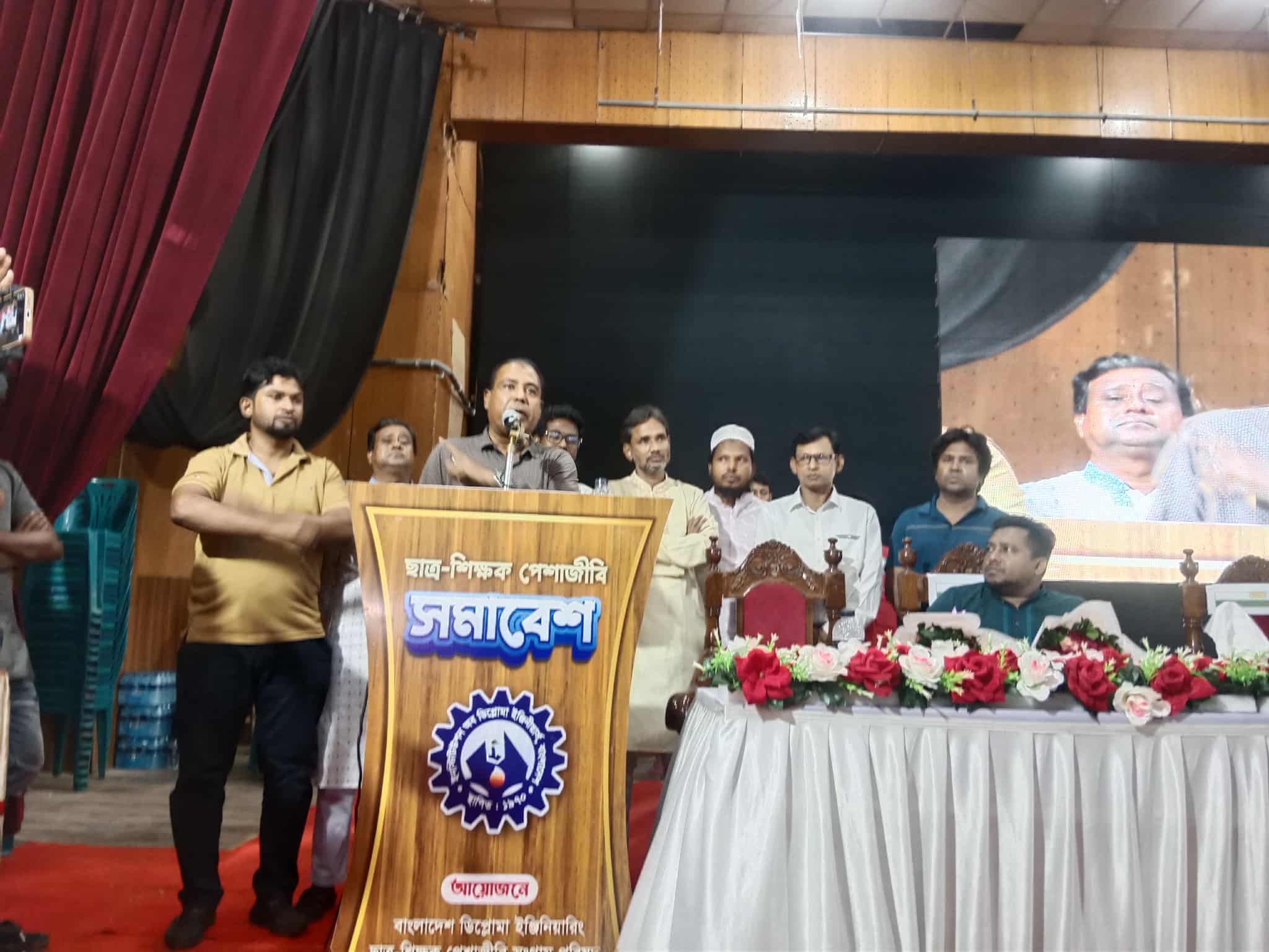 অদ্য বিকেল ৩.০০ ঘটিকায় টিটু মিলনায়তনে বাংলাদেশ ডিপ্লোমা ইঞ্জিনিয়ারিং ছাত্র শিক্ষক পেশাজীবী সংগ্রাম পরিষদ বগুড়া জেলা শাখা আয়োজিত ছাত্র শিক্ষক পেশাজীবী সমাবেশে বগুড়া জেলা বিএনপি'র সভাপতি ও বগুড়া পৌরসভার সাবেক মেয়র মোঃ রেজাউল করিম বাদশা প্রধান অতিথির বক্তব্যে বলেন, শহীদ রাষ্ট্রপতি জিয়াউর রহমান ১৯৭৮ সালে ডিপ্লোমা প্রকৌশলীদের উপ-সহকারী প্রকৌশলী পদবী উপহার দিয়েছেন, তাদের ৩৩% পদোন্নতির ব্যবস্থা করেছেন। আপোষহীন দেশনেত্রী বেগম খালেদা জিয়া ১৯৯৪ সালে ডিপ্লোমা প্রকৌশলীদের ১০ গ্রেড প্রদান সহ দ্বিতীয় শ্রেণির গেজেটেড কর্মকর্তার পদমর্যাদা দিয়েছেন। অর্থাৎ ডিপ্লোমা প্রকৌশলীদের জীবন-মান উন্নয়নে বিএনপি সবসময়ই ডিপ্লোমা প্রকৌশলীদের পাশে ছিলো। ডিপ্লোমা প্রকৌশলীদের আজকে যে সামাজিক মর্যাদা, অর্থনৈতিক উন্নয়ন এগুলো সবই বিএনপির অবদান উল্লেখ করে রেজাউল করিম বাদশা আরও বলেন, আগামী নির্বাচনে জনাব তারেক রহমানের নেতৃত্বে বিএনপি সরকার গঠন করলে ডিপ্লোমা প্রকৌশলীদের ন্যয়সঙ্গত সকল দাবী বিবেচনা করা হবে ইনশাআল্লাহ। সংগ্রাম পরিষদ বগুড়া জেলা শাখার আহ্বায়ক প্রকৌশলী মোঃ নাফিউল ইসলামের সভাপতিত্বে অনুষ্ঠিত সমাবেশে প্রধান বক্তা হিসেবে বক্তব্য রাখেন, আইডিইবি কেন্দ্রীয় নির্বাহী কমিটির সংগ্রামী আহবায়ক প্রকৌশলী মোঃ কবীর হোসেন। বিশেষ অতিথি হিসেবে উপস্থিত ছিলেন, বগুড়া জেলা বিএনপি'র ভারপ্রাপ্ত সাধারণ সম্পাদক ও সাবেক এমপি আলহাজ্ব মেঃ মোশারফ হোসেন, সংগ্রাম পরিষদ কেন্দ্রীয় কমিটির আহবায়ক প্রকৌশলী মোঃ আখেরুজ্জামান, বগুড়া পলিটেকনিক ইনস্টিটিউটের অধ্যক্ষ প্রকৌশলী মোঃ শফিকুল ইসলাম, বীট পলিটেকনিক ইনস্টিটিউটের অধ্যক্ষ প্রকৌশলী মোঃ সাহাবুদ্দীন সৈকত, টিএমএস পলিটেকনিক ইনস্টিটিউটের অধ্যক্ষ জি,আর,এম মাসুদ রানা, আইআইটিবি'র উপাধ্যক্ষ মোঃ জামিউল ইসলাম,বগুড়া জেলা আইডিইবি'র সভাপতি প্রকৌশলী মোহাম্মাদ আছাদুল হক, প্রকৌশলী সৈয়দ মেঃ আব্দুল আজিজ, আইডিইবি'র কেন্দ্রীয় নেতা প্রকৌশলী পারভেজ মোশারফ রাঢ়ী এবং প্রকৌশলী মোঃ তুহিনুজ্জামান তুহিন। বগুড়া জেলা আইডিইবি'র সাংগঠনিক সম্পাদক প্রকৌশলী মোঃ আতিকুর রহমানের সঞ্চালনায় অনুষ্ঠিত সমাবেশে স্বাগত বক্তব্য রাখেন, বগুড়া জেলা আইডিইবি'র সাধারণ সম্পাদক ফজর আলী লিটন। সংগ্রাম পরিষদ আয়োজিত আজকের এই সমাবেশে সরকারি-বেসরকারি পলিটেকনিক ইনস্টিটিউটের শিক্ষক-শিক্ষার্থী সহ বিভিন্ন দপ্তরের সদস্য প্রকৌশলী বৃন্দ উপস্থিত ছিলেন।