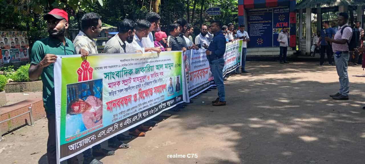 গাজীপুরের কালীগঞ্জের জামালপুরে দৈনিক ঢাকার ডাক পত্রিকার প্রতিনিধি এবং কালীগঞ্জ থানা প্রেসক্লাবের সভাপতি সাংবাদিক জাকারিয়া আল মামুনের উপর সন্ত্রাসী হামলার প্রতিবাদে মানববন্ধ কর্মসূচী ও বিক্ষোভ সমাবেশ করেছে সাংবাদিক, বন্ধু মহল এবং সুশীল সমাজ।