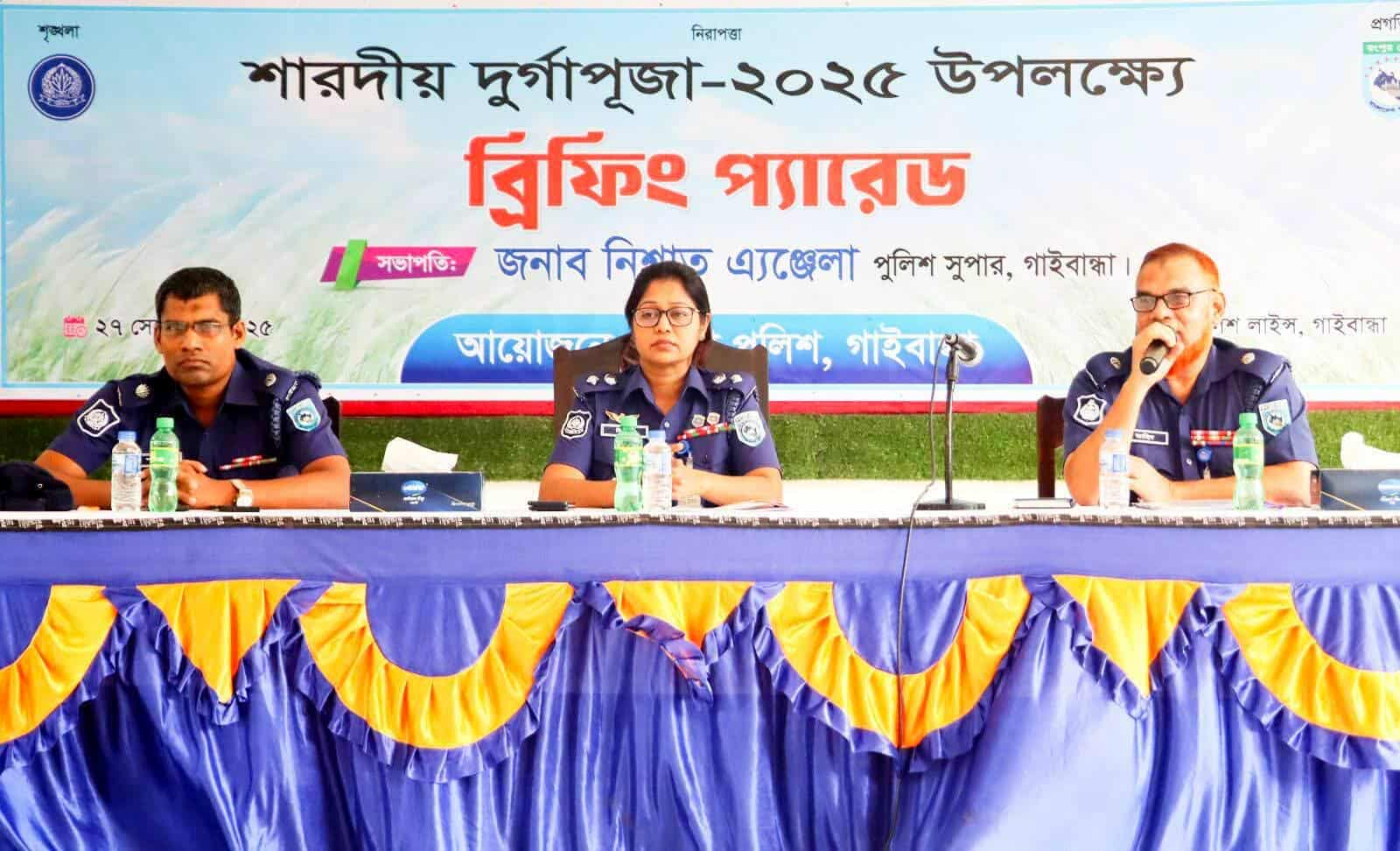 গাইবান্ধা পুলিশ লাইন্স ড্রিল শেডে এ শারদীয় দূর্গাপূজা উপলক্ষে ডিউটিরত পুলিশ সদস্যদের উদ্দেশ্যে ব্রিফিং প্যারেড অনুষ্ঠিত হয়েছে।