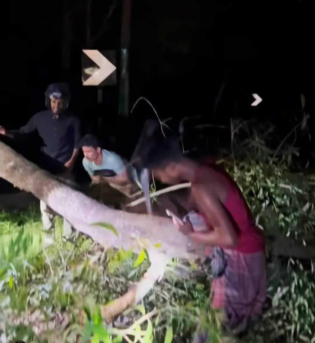 খবর পেয়ে সাতগাঁও হাইওয়ে থানা পুলিশ ঘটনাস্থলে পৌঁছে স্থানীয়দের সহযোগিতায় সড়কে ফেলা গাছ সরিয়ে যান চলাচল স্বাভাবিক করে।