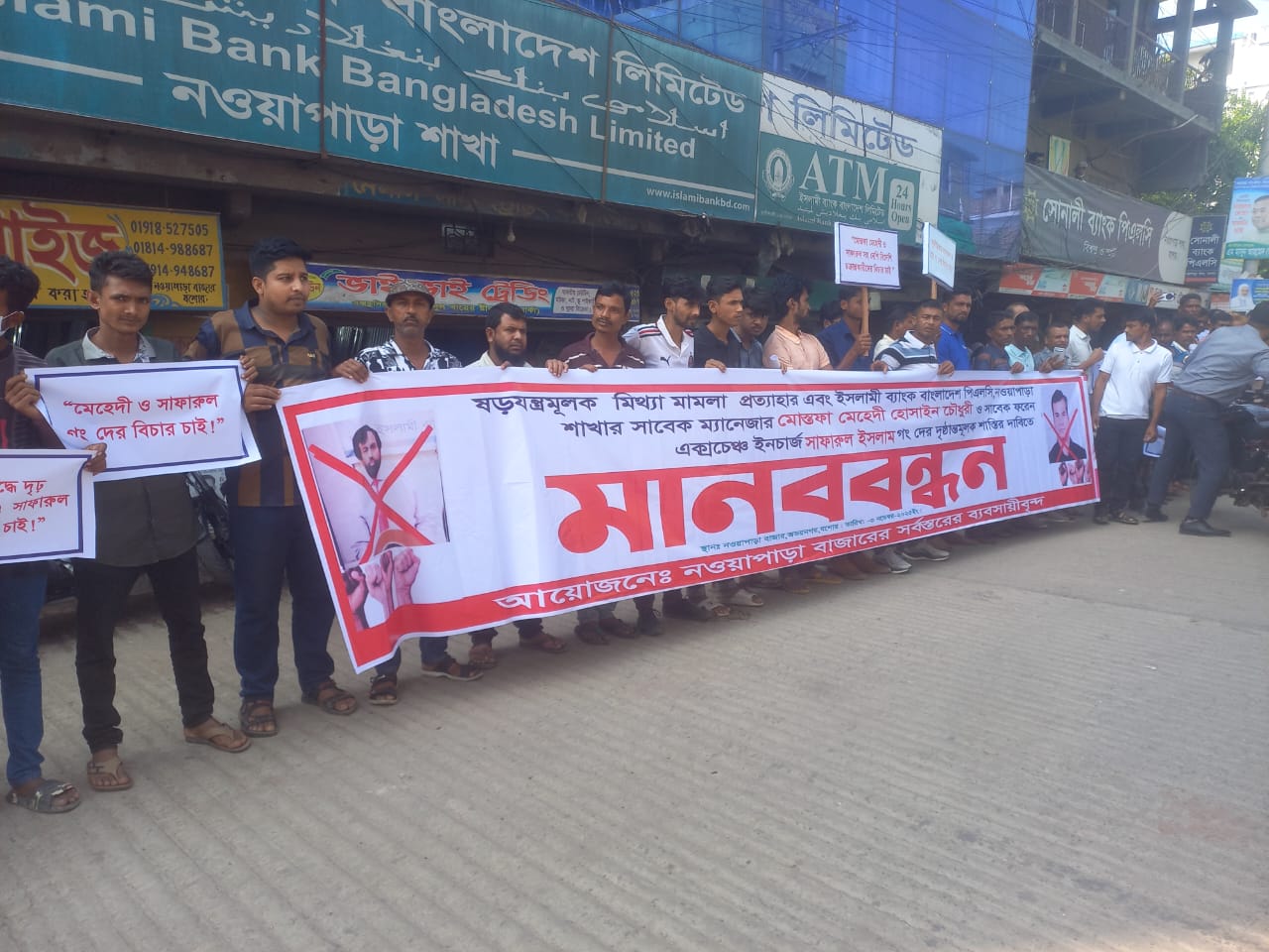 যশোরের অভয়নগরে নওয়াপাড়ার ব্যবসায়ীরা আজ রাস্তায় নেমেছেন একটাই দাবিতে “দুর্নীতির বিচার চাই, নির্দোষদের হয়রানি নয়।” ইসলামী ব্যাংক বাংলাদেশ পিএলসি’র নওয়াপাড়া শাখার তিন সাবেক কর্মকর্তা মোস্তফা মেহেদী হোসাইন চৌধুরী, সাফারুল ইসলাম ও আব্দুল হান্নান এর বিরুদ্ধে অভিযোগ, তারা ব্যক্তিগত স্বার্থে কোটি টাকার অনৈতিক লেনদেন করে পরে দায় চাপিয়েছেন সৎ ব্যবসায়ীদের ঘাড়ে। সোমবার (৩ নভেম্বর) সকালে অনুষ্ঠিত মানববন্ধনে বক্তারা বলেন, এই তিন কর্মকর্তা ব্যাংকের নিয়মনীতি তোয়াক্কা না করে নানা অবৈধ লেনদেনে জড়িত ছিলেন। বিষয়টি প্রকাশ পেলে নিজেদের অপরাধ আড়াল করতে স্থানীয় নির্দোষ ব্যবসায়ীদের বিরুদ্ধে দুদক দিয়ে মিথ্যা মামলা করান। এতে এলাকায় তীব্র ক্ষোভ ও অসন্তোষের জন্ম নেয়। ব্যবসায়ীরা অভিযোগ করেন, ওই কর্মকর্তারা দেশি-বিদেশি কিছু অসাধু চক্রের সঙ্গে যুক্ত, যারা দেশের অর্থনীতিকে অস্থিতিশীল করতে ফ্যাসিবাদী কর্মকাণ্ডে লিপ্ত। এমনকি বাংলাদেশের নাগরিকত্ব ত্যাগ করে ইন্দোনেশিয়ায় আশ্রয় নেওয়া এক প্রতারক ব্যবসায়ীও এই চক্রের মূল হোতা বলে দাবি ওঠে। বক্তারা বলেন, আমরা সৎভাবে ব্যবসা করি, অথচ দুর্নীতিবাজদের ষড়যন্ত্রে আমাদের নাম জড়ানো হচ্ছে। এ অন্যায়ের বিরুদ্ধে আজ নওয়াপাড়ার রাস্তায় নেমেছি বিবেকের তাড়নায়। তারা আরও জানান, করোনা-পরবর্তী বৈশ্বিক মন্দা আর ডলার রেট বৃদ্ধির কারণে ক্ষতিগ্রস্ত অনেক ব্যবসায়ী ব্যাংকের নিয়ম অনুযায়ী ঋণ পুনঃতফসিলের আবেদন করেছিলেন। কিন্তু ওই কর্মকর্তারা ঘুষ দাবি করেন। ঘুষ না দিলে মামলা দেওয়ার হুমকি দেন এবং শেষ পর্যন্ত সেই হুমকি বাস্তবায়ন করেন। ব্যবসায়ীরা ইসলামী ব্যাংক কর্তৃপক্ষের প্রতি আহ্বান জানান, নিরপেক্ষ তদন্ত করুন, প্রকৃত অপরাধীদের চিহ্নিত করুন। সৎ ব্যবসায়ীদের হয়রানি বন্ধ না হলে ঢাকায় প্রধান কার্যালয়ের সামনে বৃহত্তর আন্দোলন গড়ে তোলা হবে। তারা সতর্ক করে বলেন, দুর্নীতিবাজ ব্যাংক কর্মকর্তাদের অন্যত্র বদলি করে রক্ষা করার চেষ্টা করা হলে তা মেনে নেওয়া হবে না। মানববন্ধনে একাত্মতা প্রকাশ করেন স্থানীয় বিভিন্ন ব্যবসায়ী সংগঠনের নেতারা। তারা বলেন, এ লড়াই কোনো ব্যক্তি বা গোষ্ঠীর নয় এটি ন্যায়বিচার, স্বচ্ছতা ও ফ্যাসিবাদবিরোধী অবস্থানের লড়াই।