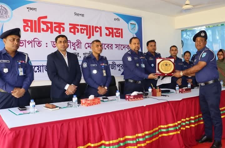 অনুষ্ঠানে প্রধান অতিথি গাজীপুর জেলার পুলিশ সুপার ডক্টর চৌধুরী যাবের সাদেক কালীগঞ্জ থানার (ওসি) মো. আলাউদ্দিন এর হাতে শ্রেষ্ঠ ওসির সম্মাননা স্মারক তুলে দেন।
