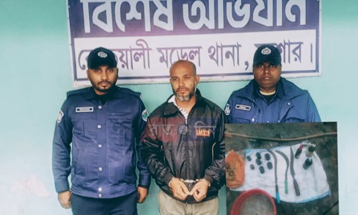 যশোরে সাতটি ককটেল, তিনটি পেট্রোল বোমা সাদৃশ্য বস্তু ও বেশ কিছু ধারালো অস্ত্রসহ যুবদলের এক নেতাকে আটক করেছে পুলিশ। আটক ব্যক্তির নাম মাসুদ আল রানা (৩৫)। তিনি যশোর শহরের চাঁচড়া রায়পাড়া রাজা বরদাকান্ত রোড এলাকার নজরুল ইসলামের ছেলে এবং শহরের ৬ নম্বর ওয়ার্ড যুবদলের সাধারণ সম্পাদক হিসেবে পরিচিত।
