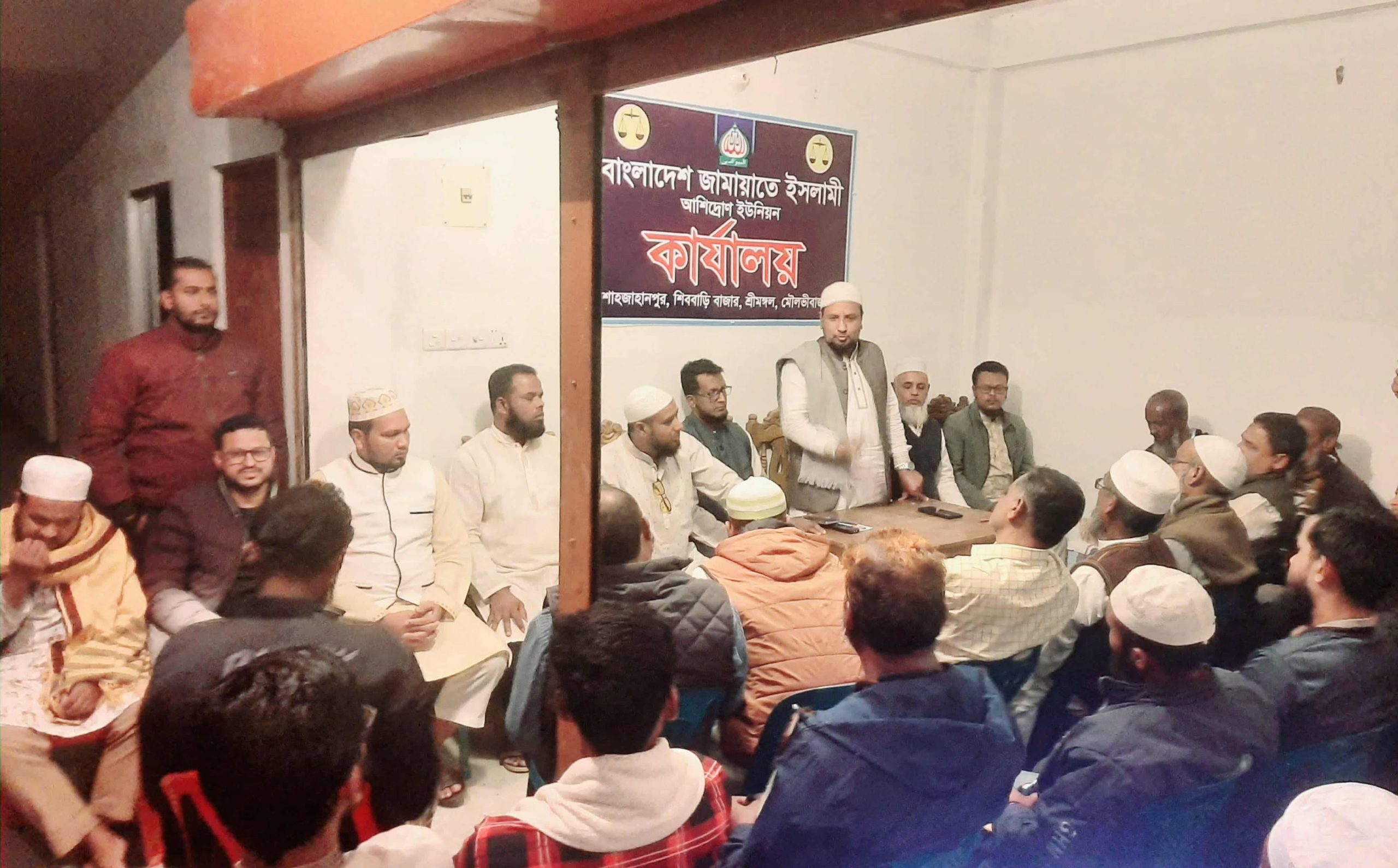 মৌলভীবাজারের শ্রীমঙ্গল উপজেলার শাহজাহানপুর শিববাড়ি বাজারে বাংলাদেশ জামায়াতে ইসলামীর ৬নং আশিদ্রোন ইউনিয়ন কার্যালয়ের উদ্বোধন অনুষ্ঠিত হয়েছে। একইসঙ্গে শিববাড়ি বাজারে জামায়াতের এক নির্বাচনী জনসভাও অনুষ্ঠিত হয়। মঙ্গলবার (২৫ নভেম্বর ২০২৫) মাগরিবের নামাজের পর আয়োজিত এ অনুষ্ঠানে সভাপতিত্ব করেন আশিদ্রোন ইউনিয়ন জামায়াতের সভাপতি মনির মিয়া এবং পরিচালনা করেন ইউনিয়ন সেক্রেটারি আব্দুল মুমিন।
