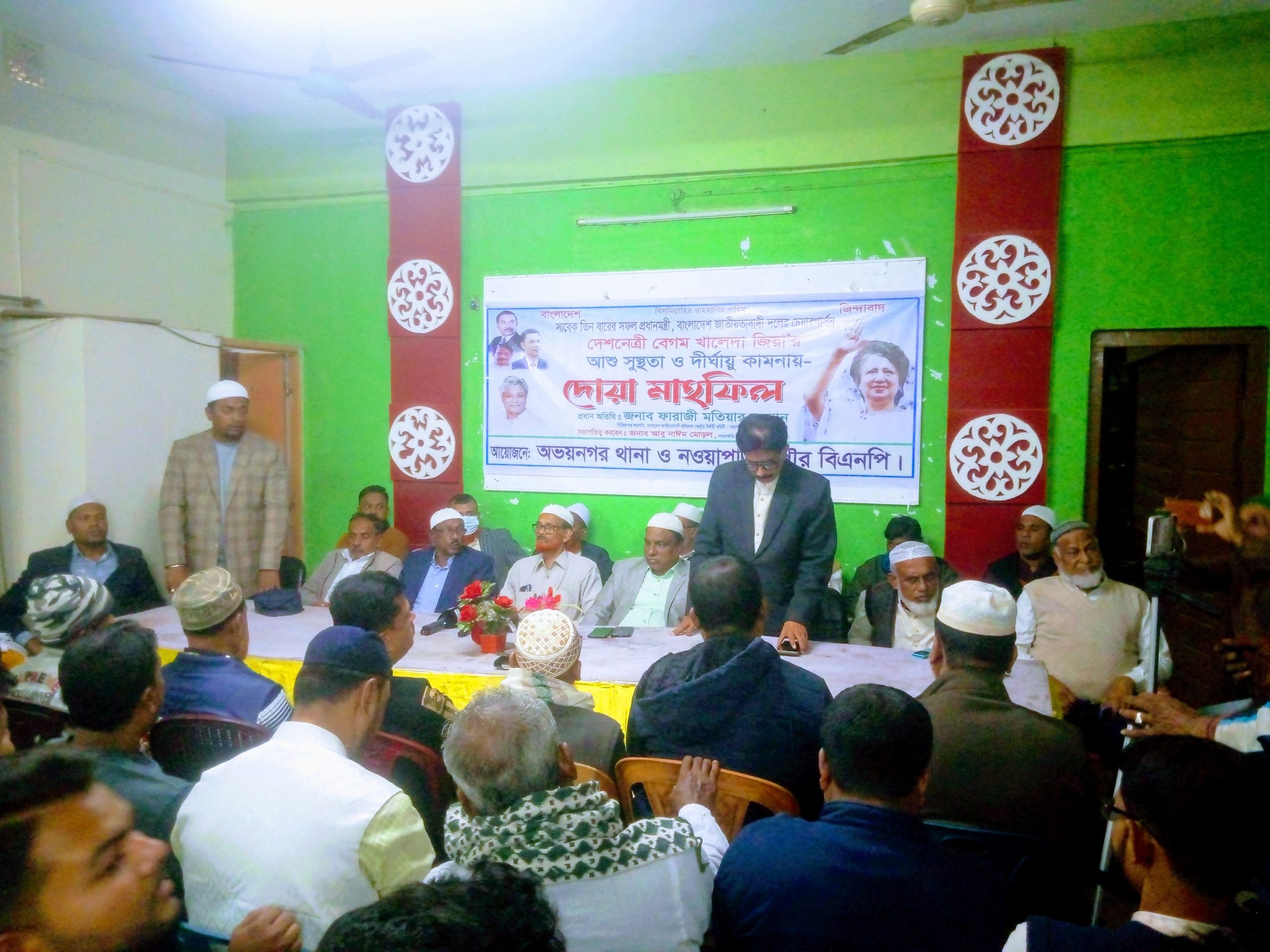 যশোরের অভয়নগরে আপোষহীন দেশনেত্রী ও সাবেক প্রধানমন্ত্রীর বেগম খালেদা জিয়ার দ্রুত রোগমুক্তি ও সুস্থতা কামনায় এক দোয়া মাহফিল অনুষ্ঠিত হয়েছে।