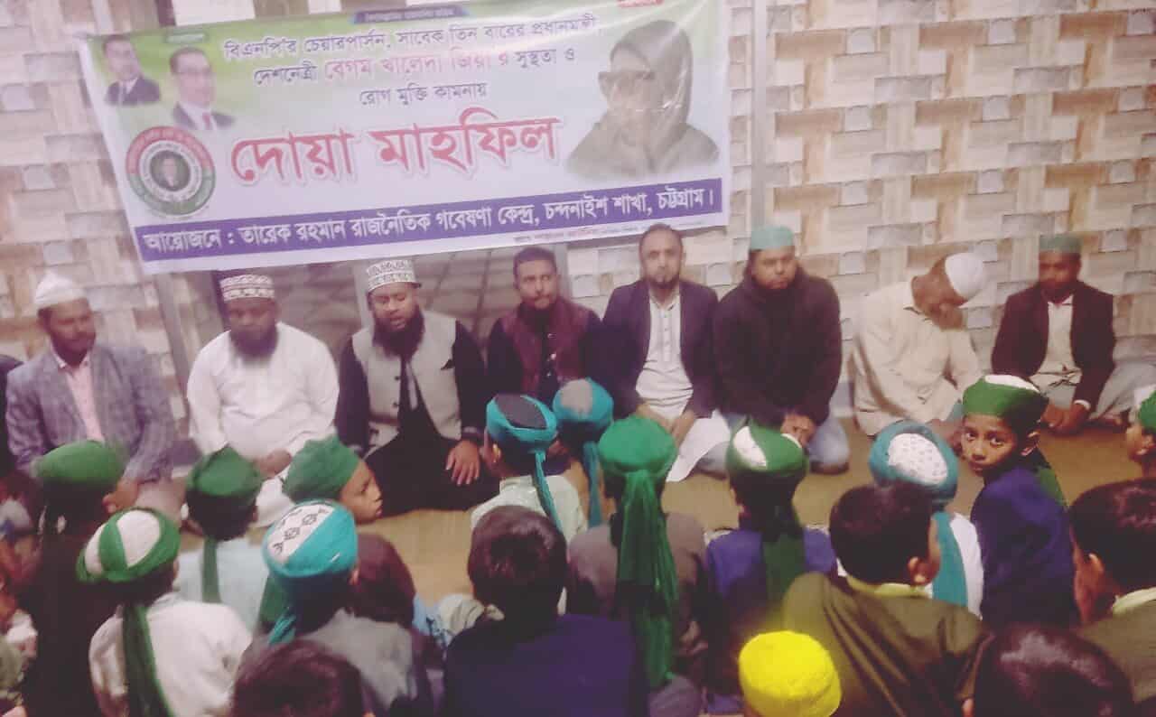 বিএনপি চেয়ারপার্সন ও সাবেক প্রধানমন্ত্রী বেগম খালেদা জিয়ার সুস্থতা কামনায় চট্টগ্রামের চন্দনাইশে তারেক রহমান রাজনৈতিক দর্শন চর্চা ও গবেষণা কেন্দ্রের উদ্যোগে দোয়া ও মিলাদ মাহফিল অনুষ্ঠিত হয়েছে।