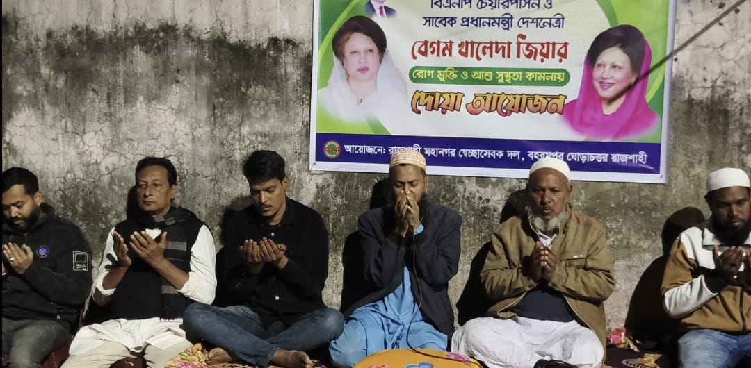 রাজশাহী মহানগরীর রাজপাড়া থানা ঘোড়াচত্তরে বৃহস্পতিবার (৪ডিসেম্বর) সন্ধায় সাবেক প্রধানমন্ত্রী ও বাংলাদেশ জাতীয়তাবাদী দল বিএনপির চেয়ারপার্সন বেগম খালেদা জিয়ার রোগমুক্তি কামনায় দোয়া মাহফিল অনুষ্ঠিত হয়েছে।