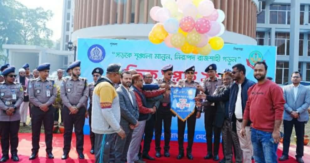 রাজশাহী মহানগরীতে সড়ক শৃঙ্খলা জোরদার ও জনসচেতনতা বৃদ্ধির লক্ষ্যে রাজশাহী মেট্রোপলিটন পুলিশের উদ্যোগে ট্রাফিক সপ্তাহ–২০২৫ এর আনুষ্ঠানিক উদ্বোধন করা হয়েছে।