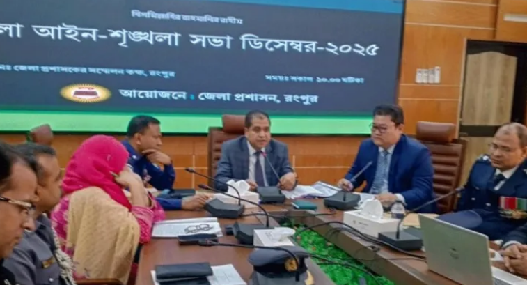 রংপুর জেলা প্রশাসক মোহাম্মদ এনামুল আহসানের সভাপতিত্বে আইন শৃঙ্খলা বিষয়ক সভায় উপস্থিত ছিলেন, জেলা পুলিশ সুপার মো. মারুফাত হুসাইন, সিভিল সার্জন ডা. শাহীন সুলতানা, সরকারি আইনজীবী আব্দুল হাদী বেলালসহ বিভিন্ন আইনশৃঙ্খলা বাহিনীর কর্মকর্তা, রাজনৈতিক নেতৃবৃন্দ ও সুশীল সমাজের প্রতিনিধিরা।