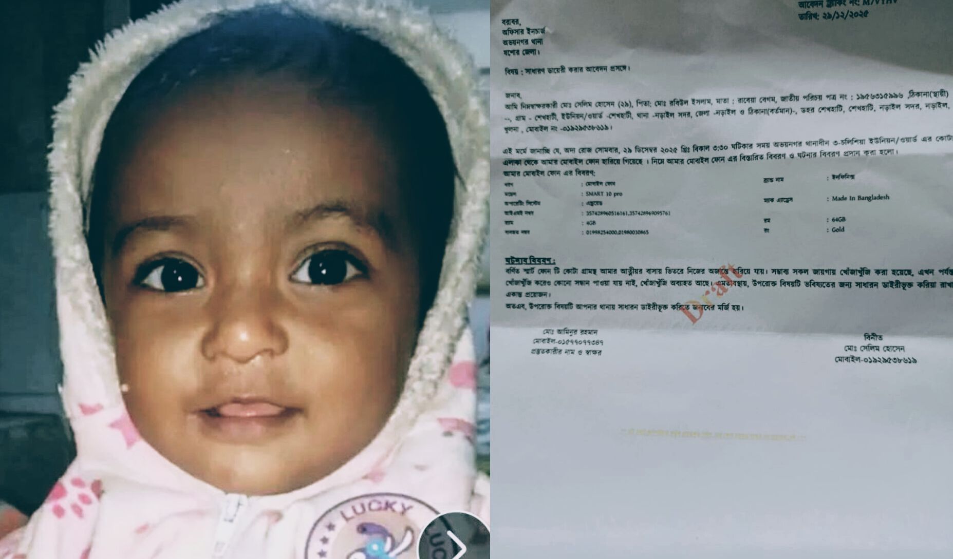 মোবাইল চুরির ঘটনায় তিনি যশোরের অভয়নগর থানায় একটি সাধারণ ডায়েরি (জিডি) করেছেন। জিডির ট্র্যাকিং নম্বর-M7VYHV, তারিখ ২৯/১২/২০২৫ ইং।