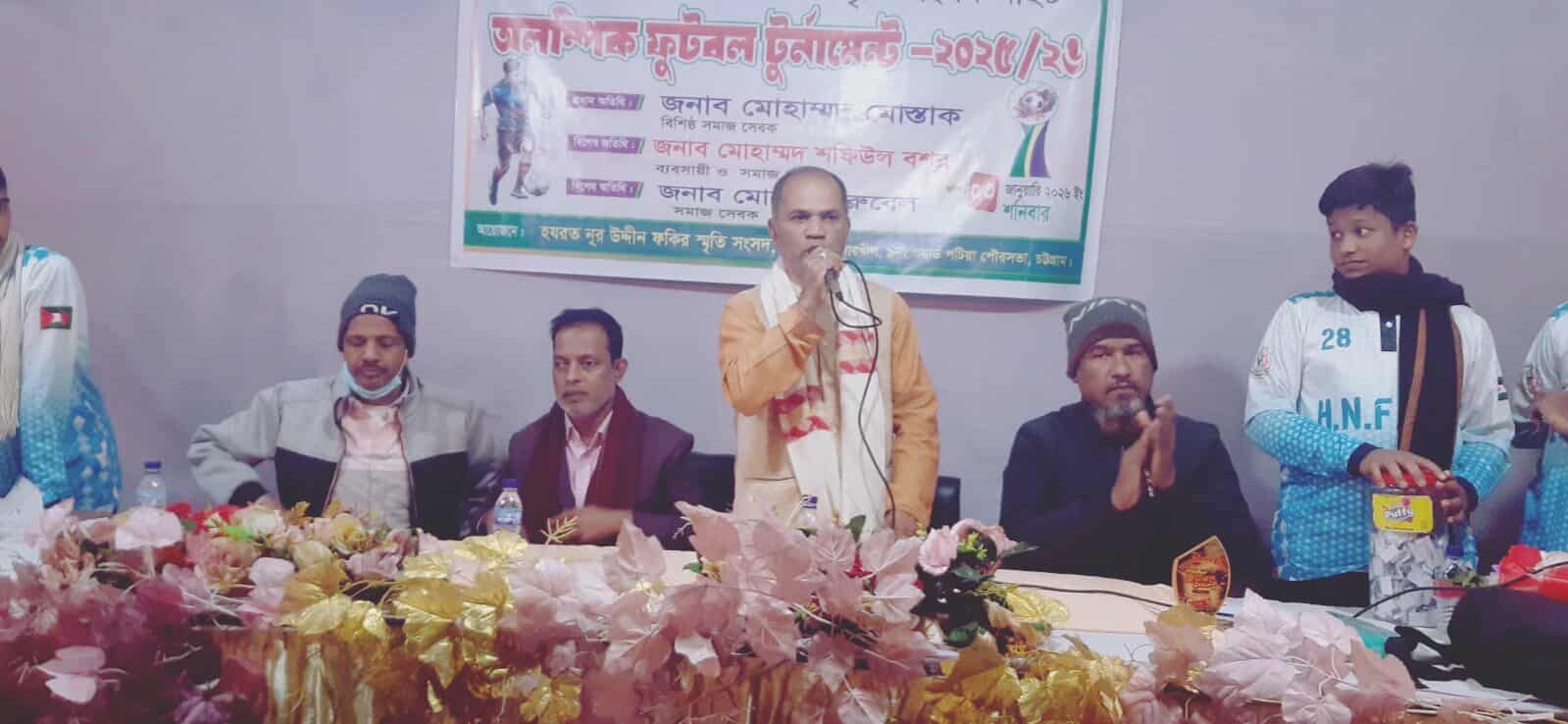 প্রধান অতিথি'র বক্তব্য মোস্তাক আহমদ বলেন, খেলাধুলা শুধুমাত্র শারীরিক সুস্থতাই দেয় না, বরং এটি নৈতিক শিক্ষা ও আদর্শ জীবন গঠনের এক শক্তিশালী মাধ্যম, যা শৃঙ্খলা, নেতৃত্ব, ধৈর্য, আত্মবিশ্বাস, সততা, ও দেশপ্রেমের মতো গুণাবলি বিকাশে সাহায্য করে এবং জীবনের চ্যালেঞ্জ মোকাবেলায় প্রস্তুত করে তোলে, যা সুস্থ ও পরিপূর্ণ জীবনযাপনের জন্য অপরিহার্য। মোস্তাক আহমদ খেলাধুলার পাশাপাশি শিক্ষাই সুশিক্ষিত হয়ে নৈতিক শিক্ষা মাধ্যমে আদর্শ জীবন গঠনের আহবান জানান।