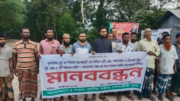 মোঃ কামরুল ইসলাম টিটু,বাগেরহাট শরনখোলা প্রতিনিধি বাগেরহাটের শরণখোলায় পূর্ব সুন্দরবনের শরণখোলা রেঞ্জের প্রতি বৈষম্য মুলক আইন প্রত্যাহারের দাবিতে মানববন্ধন করেছে সুন্দরবনের উপর নির্ভরশীল সকল মৎস্য ও পেশাজীবিবৃন্দ। বৃহস্পতিবার (২অক্টোবর) সকাল১০-০০