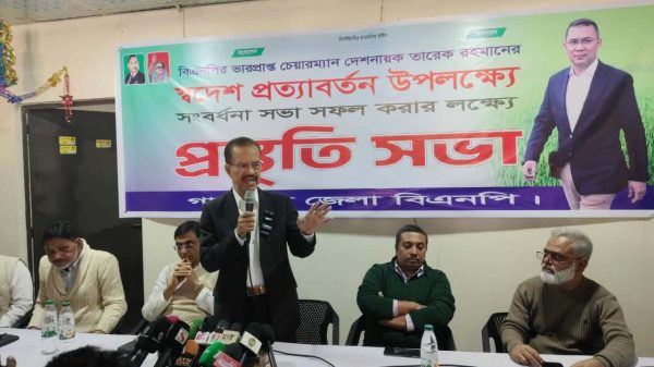 মোঃ মুক্তাদির হোসেন,স্টাফ রিপোর্টার গাজীপুরের কালীগঞ্জে বিএনপির ভারপ্রাপ্ত চেয়ারম্যান তারেক রহমানের স্বদেশ প্রত্যাবর্তন উপলক্ষে সংবর্ধণা সভা সফল করার লক্ষ্যে গাজীপুর জেলা বিএনপির প্রস্তুতিমূলক সভা অনুষ্ঠিত হয়েছে। সোমবার (২২ ডিসেম্বর) দুপুরে