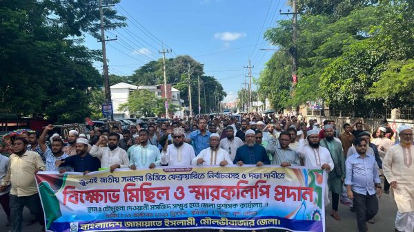 নিজস্ব প্রতিবেদক: মোঃ জালাল উদ্দিন। ‘জুলাই জাতীয় সনদের ভিত্তিতে ফেব্রুয়ারিতে নির্বাচন’—সহ পাঁচ দফা দাবিতে বিক্ষোভ মিছিল ও স্মারকলিপি প্রদান কর্মসূচি পালন করেছে বাংলাদেশ জামায়াতে ইসলামী মৌলভীবাজার জেলা শাখা। আজ রবিবার