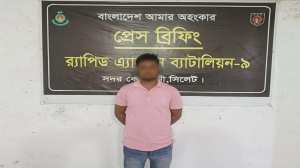 নিজস্ব প্রতিবেদক: মোঃ জালাল উদ্দিন। মৌলভীবাজার জেলার কুলাউড়া উপজেলায় র্যাবের বিশেষ অভিযানে প্রায় ১ কোটি টাকার দেশি-বিদেশি জাল নোট ও পাঁচটি নকল বিদেশি পিস্তলসহ মোক্তাদির আলী (৩৪) ওরফে রিপন নামের